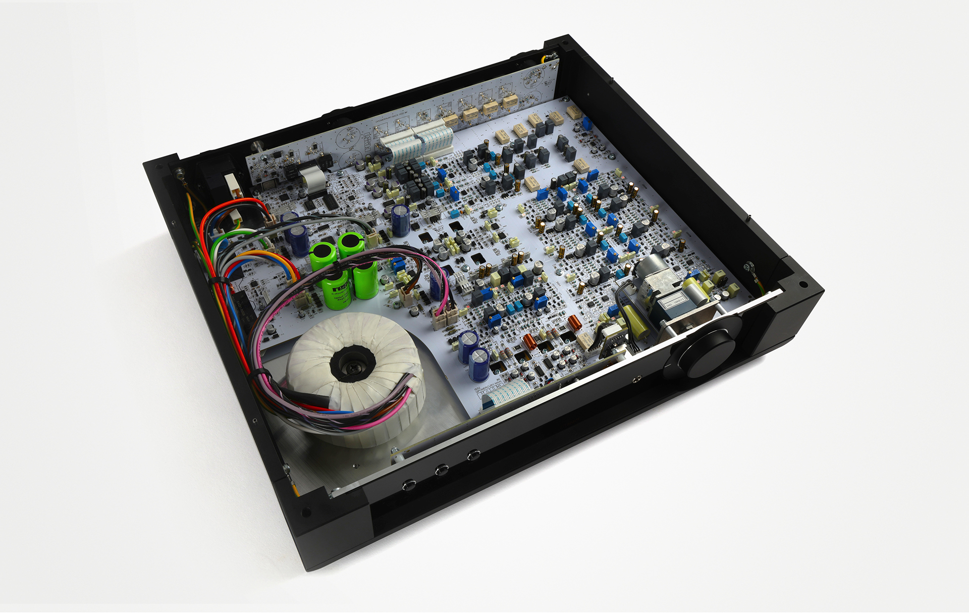 The Solis amplifier is robust, with a huge power supply and six Sanken 130 watt, 15A power transistors are used in the output stage. Separate 330VA toroidal transformers provide a discrete mono power supply. The supplied image of the inside reveals just how beefy the power supply in the Solis is. I wouldn’t even know where to begin to take this one apart!